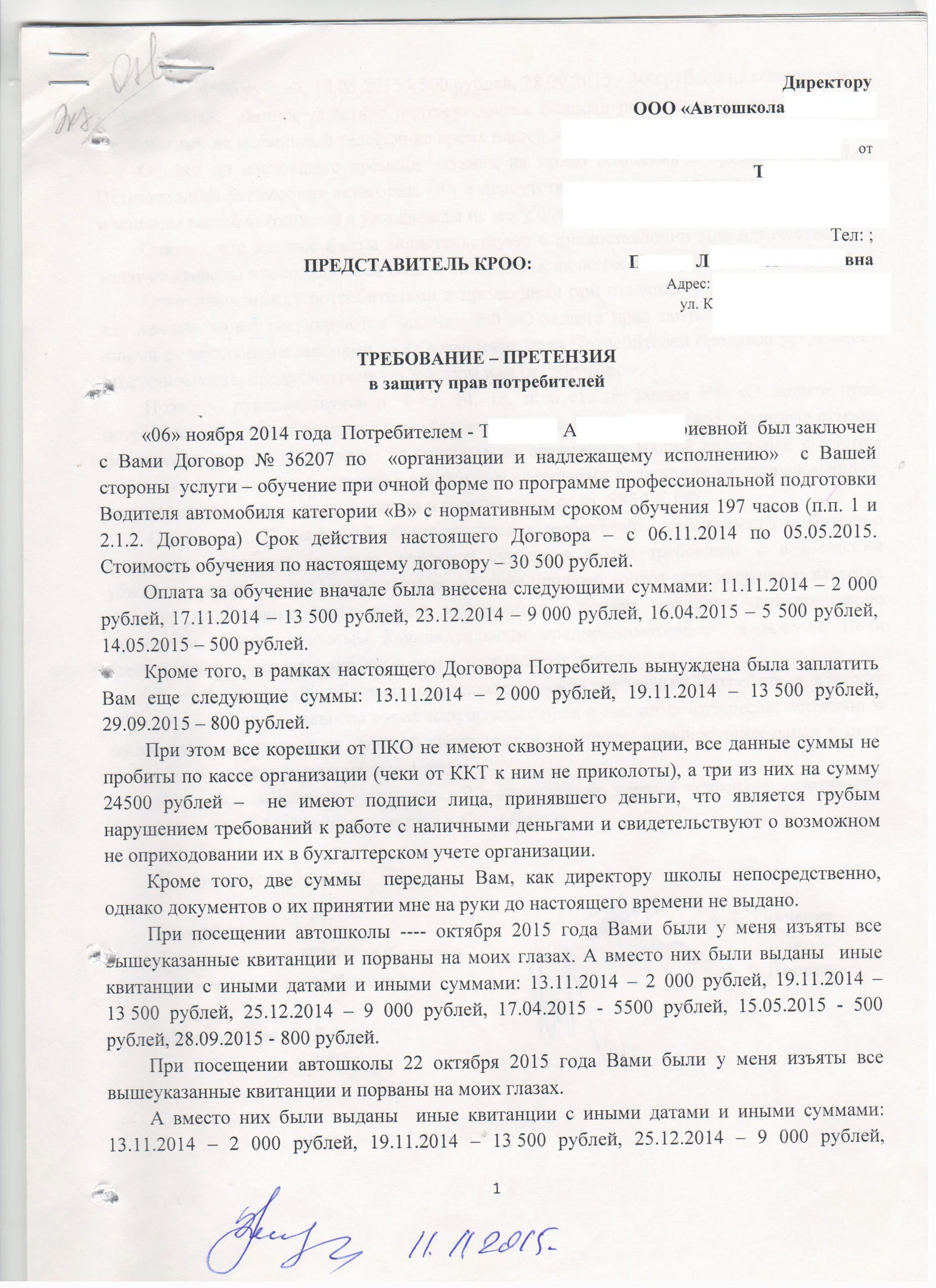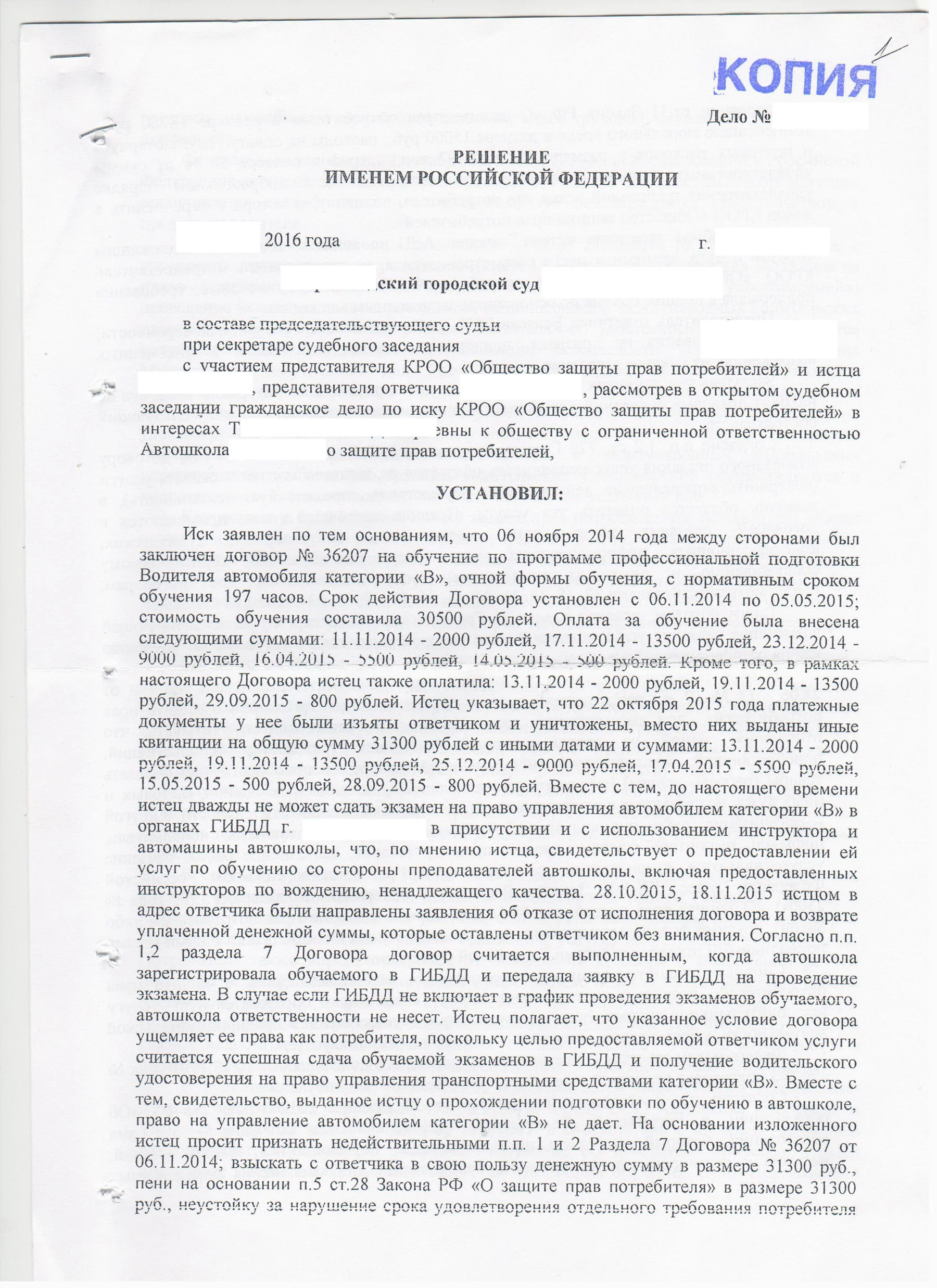 г.______________ “___” _____________20__г.